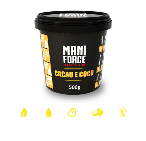 Maniforce Cacau e Coco é nutritiva e saudável, ela é fonte de nutrientes importantes como a proteína, sendo o amendoim um dos melhores vegetais nessa questão. E para dar aquele sabor inigualável Cacau e Coco 100% Natural!